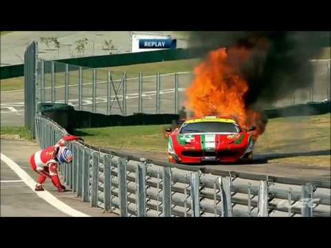 Во время 6-часовой гонки мировой серии World Endurance(WEC 2013 6 Hours of Sao Paulo), проходившей на Интерлагосе вдруг загорелась гоночная AF Corse Ferrari 458 Italia под номером 71 финского пилота Тони Виландера.
