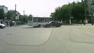 На легковой автомобиль смотрите, там вроде как бы задний пассажир толи выйти пытался толи она открылась от того что он на нее облокотился и чуть не выпал.
