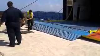 Экстремальная погрузка автомобилей на паром.