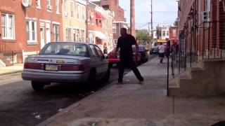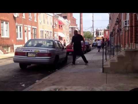 По каким-то не понятным причинам, данная машина стала предметом для вымещения агрессии, со стороны чернокожего прохожего.