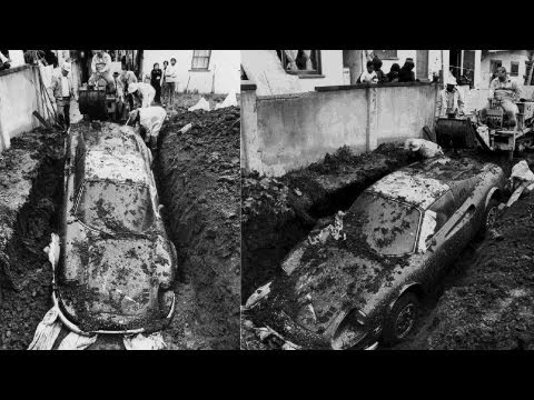 История эта случилась в Лос-Анджелесе в 1978 году, когда, по сообщению газет, дети игравшие на заднем дворе одного из домов нашли кусок пленки торчащий из под земли. Когда они решили его откопать, то обнаружили, что под пленкой, всего в нескольких сантиметрах под землей, находится что-то большое, железное и очень похожее на автомобиль. Дети сообщили о находке родителям, а те вызвали полицию. Прибывшие детективы раскидали землю и увидели лобовое стекло автомобиля. Посветив внутрь они с облегчением выдохнули - тел внутри автомобиля не было. Через несколько дней они вернулись на место с бригадой рабочих и принялись откапывать находку. Дальнейшая раскопка показала, что в автомобиле нет ни тел, ни наркотиков, ни оружия. Но это еще больше запутало ситуацию. Ведь закопанная в землю машина была не каким-то ржавым Шевроле со свалки, а почти новеньким Ferrari Dino 246 GTS. Кому могло придти в голову закапывать дорогой спортивный автомобиль. И, главное, зачем?